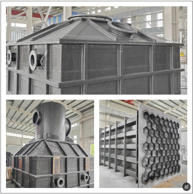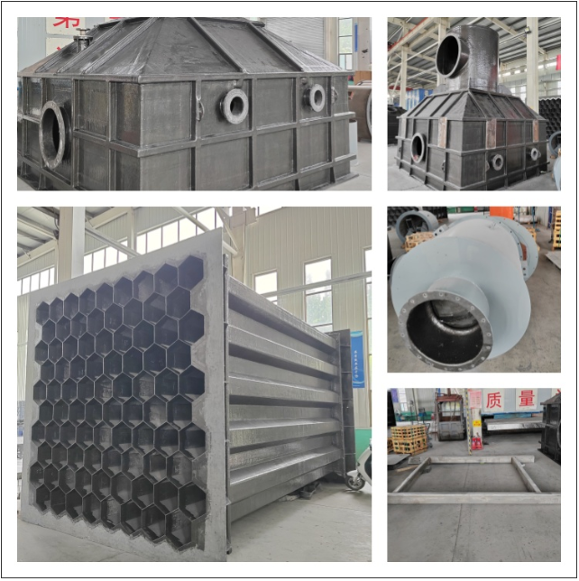 近日,寧夏氫氰酸尾氣治理項目濕電除霧器發貨,該濕電入口煙氣為二級脫硫塔交貨后的煙氣,設計工況60℃,瞬時最高工況80℃,采用間歇噴漆水沖洗。尾氣治理要求出口粉塵排放濃度≤10mt/Nm³,除塵效率≥90%。